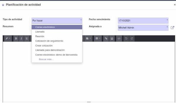 - Todas las acciones quedan registradas en el Chatter de Odoo, de manera que siempre sabrás todos los detalles de la oportunidad.