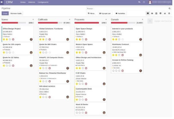 - Costo bajo y su implementación rápida, Odoo CRM es ideal para empresas que desean poner en marcha un CRM de manera inmediata.